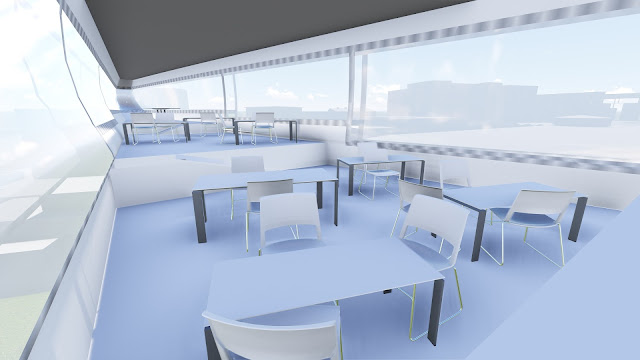 The building form harnesses, stimulates and distributes pedestrian activity, movement, and flows. The gallery at the centre drives the building's circulation. All stairs and ramps that lead to different spaces within the bridge stems from and surrounds the gallery for maximum exposure to new ideas and forms of architecture. It encourages occupants to disperse and create.
